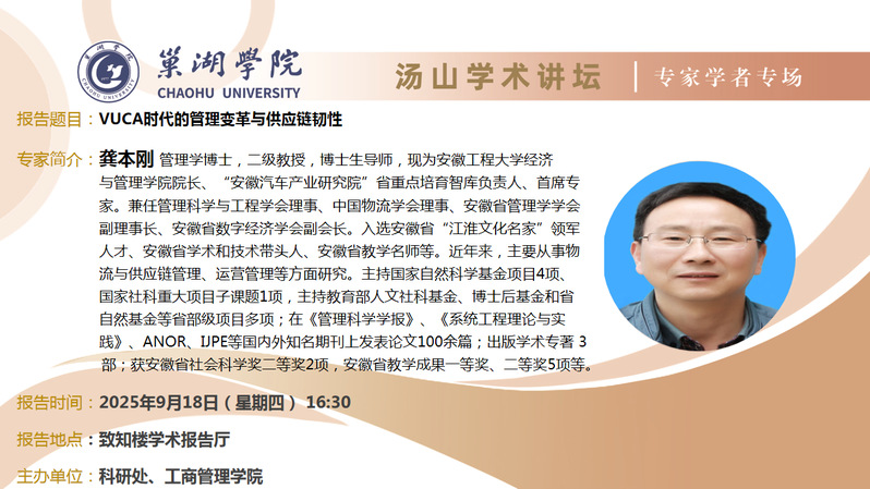 • 9月18日:安徽工程大學龔本剛教授講座